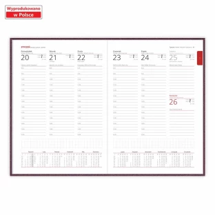 Kalendarz książkowy B5 oprawa łączona - Rozkład Tygodniowy