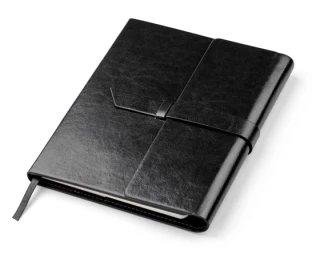 Dodatkowe informacjeMiejsce na 3 wizytówki, długopis oraz pamięć USB. Okładka nie jest umocowana na stałe do bloku notesu, tylko nasuwana na pierwsze kartki, co daje możliwość wymiany notesu.